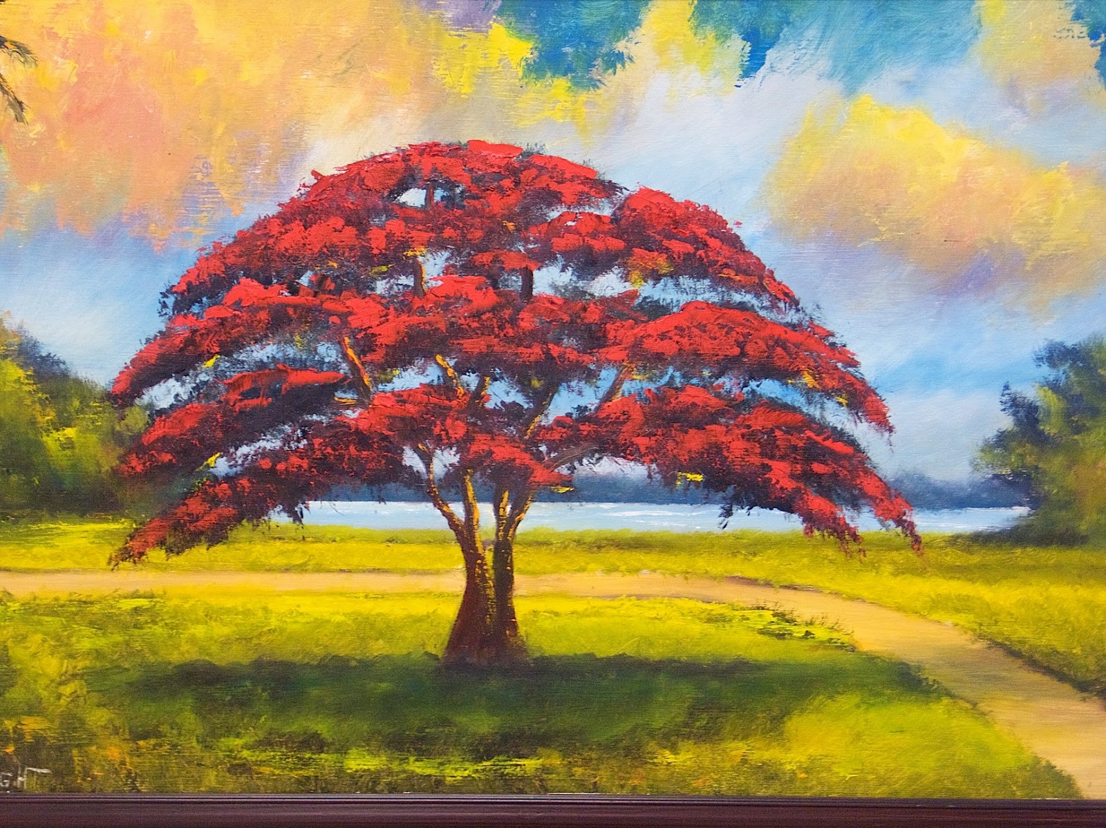 Al Hair, born 1941, came and studied with Backus. Soon he was doing landscapes from his memory (not from photos) and linked up with Al Black who sold them to businessmen along A1A and out of his truck. Things were going well- hoping to make many canvas to make much money he learned to paint on jetson board (drywall board). He had an assembly line of canvases and produced 20 paintings a day. Other young Blacks came around and Hair and the 26 original Highway men would paint in his backyard, go out and catch fish and drink and eat while painting and sell them in South Florida.